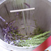 ラベンダー畑で咲いているラベンダーをご自身で刈り取り、大型水蒸気蒸留機で精油と芳香蒸留水を抽出し、出来立ての精油、蒸留水を使ってアロマグッズを作成します。
